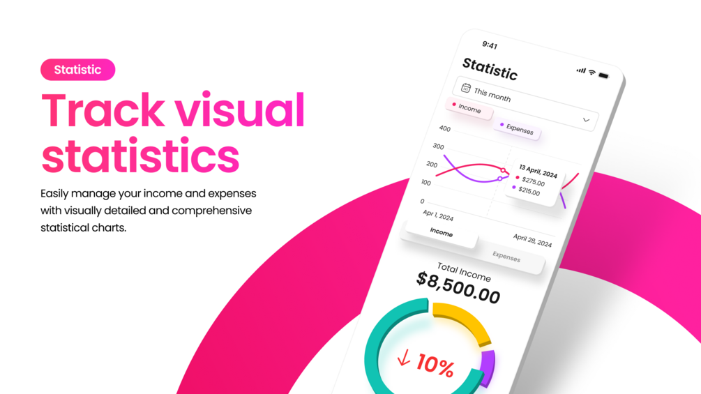 • Intuitive statistics with comprehensive, detailed data to help you easily track your spending
