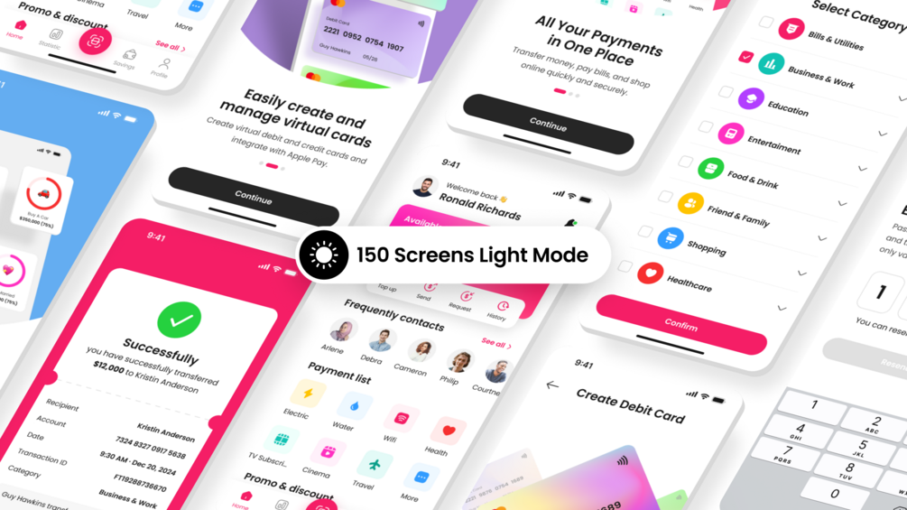 • 150 screens available in both Light Mode and Dark Mode versions